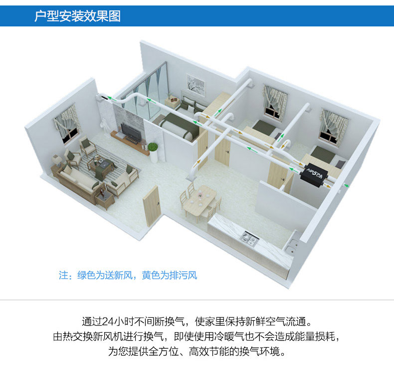 高能效比:采用水平進排風,具非常高的能效比,可回收70%以上能量 高效過濾:采用歐洲標準H13級過濾,多重過濾;PM2.5過濾99%以上 雙向流新風機:訂機采用雙核動力設計,動力強,體積小;采用直流無刷電機,低噪音,低能耗